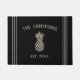 Bem-vindos convidados para a sua casa com esta encantadora casa rustica. O design personalizado apresenta o nome da sua família ou o nome da fazenda em caracteres neutros que não a letra, juntamente com o seu ano estabelecido e uma ilustração do abacaxi. A faixa de cordas detalhando sobre um fundo preto rico completa a design.
