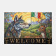 Itália Welcome Doormat com arte moderna com bandeiras italianas patriotas, lobos e veados no estilo Art Nouveau. Um tapete original de casa divertida para qualquer ocasião. Personalize facilmente o texto "bem-vindo".