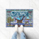 Bem-vinda à porta para a coordenação da decoração doméstica. Aproveite um novo design de pátio com um belo tapete azul de boas-vindas para qualquer humor de varanda para ela.