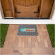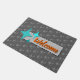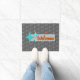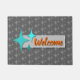 Boas-vindas laranja com as estrelas retro aqua sobre um padrão de estrelas de cinza.