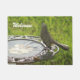 Uma porta com uma fotografia de um pássaro Mockingbird cantando em pé em um banho de pássaros, com a palavra Bem-vindo. Você pode excluir e alterar a palavra Bem-vindo. Você também pode mudar a imagem da fotografia para uma de suas, se quiser. Mockingbird foi fotografado no sul da Flórida. - Essa fotografia é protegida por copyrights por mim, o fotógrafo.