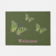 Este design apresenta uma borboleta de cauda engolida com marcas cor-de-rosa e verdes e uma tecelagem Celta nas asas e no corpo. A asa esquerda mostra a tecelagem no preto, enquanto a direita mostra a tecelagem nas marcas verde e rosa. Personalize o texto neste tapete de porta para criar uma decoração personalizada para a sua entrada.