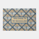 Bem-vindo ao meu Bungalow! Esta porta atraente foi projetada para um artesão Bungalow. O design é feito com azulejos de mariposa inspirados por um design de Vidro Arte e Artesanatos clássicos. As cores são ocas, brancas e azuis. Os azulejos são colocados na diagonal com um efeito de treliça azul. Você pode compor sua própria mensagem. Você está falando sério ou engraçado? É a sua vez de ser criativo. Projetado pelo Azulejo de Oregon Fay Jones Day.