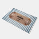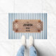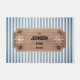 Porta com risca de Design para marinho moderna Esta porta personalizada apresenta conchas e rodas de barco ao redor de quatro linhas de texto personalizado em letras negras elegantes em um padrão riscado azul e branco. Personalize com suas informações ou faça dele um presente para se lembrar.