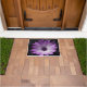 Esta incrível porta apresenta uma fotografia lindamente detalhada de uma flor margarida africana. A foto foi alterada digitalmente, resultando em uma bonito flor púrpura com diferentes tons de púrpura nas pétalas e um centro roxo escuro.