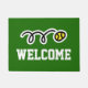 Porta de boas-vindas com design de tênis. Faça seu próprio tapete personalizado de interior/exterior com cor de fundo e texto personalizados. Adicione sua própria mensagem de boas-vindas, nome da família, sobrenome, letra inicial ou citação engraçada. Ideia divertida de presente para um novo clube, lar/lar, loja, compro, escritório de empresas, negócios, etc. A tipografia desportiva moderna com raquetes de tênis cruzadas. Modelo personalizável. Crie seu próprio tapete de entrada de classe / tapete para porta frontal / entrada ou sala. decorações/decorações caseiras personalizáveis para sua casa. Oferecer ideias para tênis, fã, treinador, etc. Padrões verdes ou personalizados.