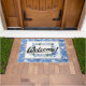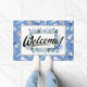 Uma bela porta de boas-vindas azul e branca ao ar livre em azul com Design de concha para aquela praia ou lago House Look