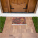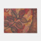Uma porta bem-vinda com folhas pintadas em lindas cores do outono de vermelho, marrom, amarelo, laranja e creme.