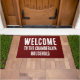 Bem-vinda à porta. O tapete de boas-vindas para a porta da frente também acrescenta "o Doméstico da Família".