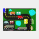 Esta porta tem um design geométrico de caminhões e carros em uma estrada e em um estacionamento.