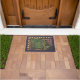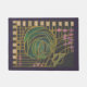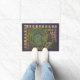 Porta do estilo Mackintosh art nouveau/deco em tons de verde lilás de ouro roxo e turquesa, com formas de rosa e lozenge silizadas