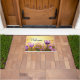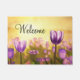 Uma ascensão solar ouro sobre um campo de tulipas roxas.