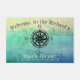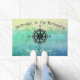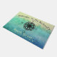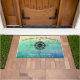 Mat de Porta do Mar de Ombre Teal Monograma Um rosa de bússola para manter seus mancais oceânicos. Desfrute do efeito de ilusão óptica na moda com os tons de Teal a azul a turquesa do fundo ombre. Mantenha a citação "Bem-vindo à Casa de Praia do Sander" ou adicione seu próprio nome, sentimento, saudações ou monograma para personalizar. Náutico, Tropical, Praia, Costeira, estilo vovó!