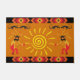 Sun Kokopelli Rug Doormat Vivid, sudoeste, combinação de cores vívidas que você pode personalizar as cores de fundo para corresponder ao seu decor. Culturas indígenas nativas americanas de Kokopelli. Atribuído a aliens antigos ou arte tribal e inspirado em desenhos de cavernas e rochas. Personalize as cores e estilos do tapete de porta nativo americano do Estilo Sudoeste. ideia de presente de excelente.