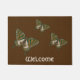Os pontos ocos, pretos, brancos e verdes criam padrões semelhantes a ondas e acentuam as manchas nesta borboleta rabo-de-vento, inspirada na tradicional arte-ponto da população aborígene da Austrália. Personalize o texto neste tapete porta para criar uma decoração personalizada para a sua entrada.