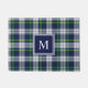 Tapete Porta Marinho Azul Tartan Xadrez Monograma, Moder
