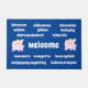 Excelente os seus convidados acolhendo-os em 14 idiomas. Uma boa conversa. Idiomas (da esquerda para a direita) Linha 1 - Francês, Alemão, Espanhol Linha 2 - Holandês, Japonês, Mandarim. Linha 3 - Russo, Árabe linha 4 - Italiano, Hindi, Vietnamita. Linha 5 - Filipino, Ucrânia