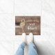 Cuidado com o tapete da porta do German shepherd Dog do beija-flor molhado que está em um fundo falso rústico. Visite nosso compro para ver uma grande variedade de pães de cão