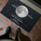 Adicione um toque elegante à sua porta com um tapete de porta personalizada lunar. Design de porta mostra uma lua de cheio enfeitada com estrelas contra um fundo do céu noturno com uma área para personalizar com seu nome. Itens de presentes adicionais disponíveis com este design, bem como uma variedade de cores.