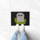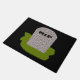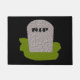 Esta fantástica porta apresenta uma pedra de cinza com RIP no texto preto pingando, sobre um pedaço de grama verde. Ao lado dessa design mórbida, o fundo é preto.