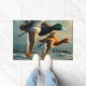 Com respiração considerando dois patos voando sobre o oceano com um pequeno barco abaixo. E uma ilha. .O texto e a cor do texto podem ser alterados para qualquer cor que você queira que seja com a marca personalizada.