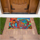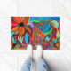 Laranja floral corajoso e tapete de porta de arte intuitivo azul e verde para interior ou exterior. Disponível em vários tamanhos, este tapete tem um suporte não derrapante e excelente para pavimentos, áreas, entrada, cozinha, banhos e muito mais.
