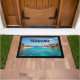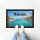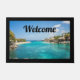 Tapete Praia Cênica Tropical com Thatch Huts bem-vindos