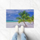 Pensei que estas palmeiras tropicais sentadas na praia branca de areia parecessem perfeitas! Turquesa clássica água quente tropical com uma ilha ao fundo. Parece uma praia de ilha tropical. Adoraria tirar umas férias. Posso imaginar-me sentado sob esta palmeira perfeita com uma bebida fria na mão.