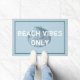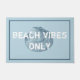 design do tema do casaco de praia com texto personalizável "somente visões de praia" em caracteres brancos angustiados, fundo azul e ilustração da casca de cor azul vintage