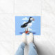 Pássaro do Atlântico Cinto, com sua típica plumagem branca e preta e bico bem colorido, parado sobre uma rocha, no oceano. Ilustração Vetor Original Copyright BluedarkArt The ChameleonArt.