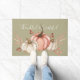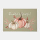 Bonito trio de abóboras aquarelas sobre fundo verde sábio com texto branco personalizável "agradecido e grato" na fonte moderna do script