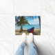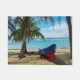 Pura Vida na Costa Rica. Barco numa praia tropical com coqueiro e mar Caribe de fundo, Puerto Viejo de Talamanca - Costa Rica