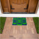 Esta porta tem um design de quadrados e círculos Bauhaus em azul e verde.