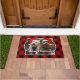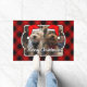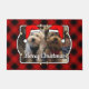Modelo de fotos de Natal divertidas com um padrão de xadrez vermelho e preto. Copyright © Angi Laframboise. Dons personalizados de fotos de feriado.