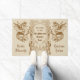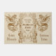 Ilustrações do século XIX bonitas de dragões medievais e dos guerreiros escoceses dos confrades que vestem kilts e que guardaram um protetor e uma espada. A folha ornamentado do cardo termina o design moldado. Tons do sepia do vintage no fundo bege. Substitua o texto da amostra com seus próprios para um presente personalizado.