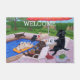 Labradores do Partido Piscina 2 Painting Doormat. Cartão-postal do Labrador Retriever e engraçado. Pintura de Labrador pintada por Naomi Ochiai. Black Labrador, Chocolate Labrador, Yellow Labrador estão todos pintados na foto. Feliz festa de Piscina! Black Lab está checando seus e-mails via Paw Pad. O laboratório de chocolate está tendo hambúrgueres! O laboratório amarelo gosta de flutuar na água enquanto outros três cães Labrador estão se divertindo.