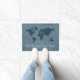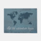 Que a aventura comece o design de texto com a decoração do mapa mundial sobre fundo azul e verde