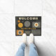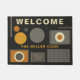 Descubra uma porta única que combina design moderna, elementos interativos e um toque de humor. A inspiradora mensagem "Find the Missing Piece!" (Encontrar a Peça Desaparecida) convida os convidados a resolver um pequeno enigma antes de entrarem e é garantido que o pessoas fale. O padrão geométrico de círculos, retângulos e linhas, ligeiramente deslocados e colocados assimetricamente, cria um olhar excitante no estilo elegante Bauhaus. Os tons pretos do fundo, combinados com sotaques em cinza, laranja, ouro amarelo e bege, dão a esse tapete um olhar moderno e quente. O texto personalizável - por exemplo, "O Código Miller" - torna o design particularmente individual e é perfeito para as famílias que amam a arte, os convidados intelectuais e os amigos designs. Ideal para fãs de design inteligente que querem embelezar a sua zona de entrada com um tapete funcional, mas na moda, ou tapete de entrada. Um apanhador de olhos que combina estilo, personalidade e diversão!