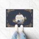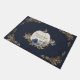"Bem-vinda, Queda da Família Abóbora Folhagem Azul Porta Frente Floral Mat" Bem-vindos à sua família e amigos com esta adorável e elegante folhagem de outono em marinho e design floral azul empoeirado. Uma abóbora branca contrastante é disparada pelo rico fundo colorido do marinho escuro. A trabalho de arte foi pintada em aquarela por uma artista e designer internacionalmente licenciada, Audrey Jeanne Roberts, autora.