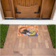 Um espantalho sorridente e seu amigo peru recebem convidados nesta porta decorativa.