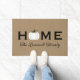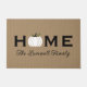 Bem-vindos convidados para sua casa este outono com um porteiro personalizado convidativo. O design de tipografia simples e na moda apresenta uma redação "Home" com um texto elegante de script personalizado para o seu nome familiar e um sotaque de abóbora branco. Inclui um esquema de cores neutro, preto, branco e verde.