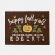 Doormat clássico e elegante para as cores bonito e coloridas da estação do outono - "queda feliz você" texto com uma abóbora, as videiras, as folhas, e o seu nome de família - do outono do marrom castanho-aloirado, da laranja do butternut, do branco do verde azeitona, o de linho, e de mais.