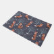 Raposas adoráveis vestidas de bonés vermelhos e cachecóis formadas em uma floresta nevada contra fundo de carvão.