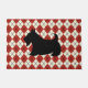 Um padrão clássico vermelho e creme argyle decora esta porta de na moda Terrier escocês. O design é da arte original.