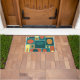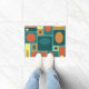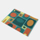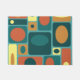 Este padrão de abstrato retroinspirado tem um fundo de turquesa e vários tamanhos de retângulos em amarelo e laranja.