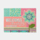 Em cores brilhantes, Barbiecore, de pêssego rosa quente e azul-turquesa, esta colagem de padrões florais brilhantes, divertidos e caprichosos cumprimentará seus convidados na sua porta da frente - começando com sua mensagem personalizada de "Amigos de boas-vindas!" e seu nome familiar personalizado. Em cores brilhantes de coral, rosa-quente, aqua, turquesa, roxo, verde limão e branco para uma saudação alegre a todos os amigos e familiares que vêm à sua porta frontal. Audrey Jeanne Roberts, trabalho de arte, direitos reservados.