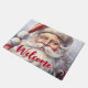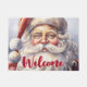 Uma porta de boas-vindas com uma ilustração de estilo vintage. Um retrato de Papais noeis com sua grande barba branca vestindo seu clássico chapéu vermelho de Papai Noel.