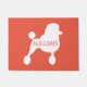 Personalize este tapete de boas-vindas do Poodle Padrão com o nome da sua família, o slogan ou elimine o texto predefinido se preferir nenhum texto. Este vermilho de design de Poodle Standard vermelho e branco faz um presente maravilhoso para novos donos de casas, recém-casados, pais de cães, mães de cães e qualquer um que ama seus animais de estimação como a família. Mais cores estão disponíveis. Visite o Doodle World de Jenn para ver ainda mais porteiras de raças de cães e a decoração doméstica do amante Standard Poodle.