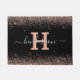 Porta da família personalizada com um fundo preto que pode ser mudado para qualquer cor, uma camada de queda d'água brilhante rosa da tendência, sua inicial e o nome em um tipo de script elegante.