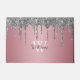 Aproveite esta elegante design com seu nome e monograma ou inicial com brilho quic e brilho prateado brilhando sobre um fundo cor-de-rosa rosa.